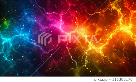 A vibrant and dynamic abstract image featuring fluid-like shapes with neon colors