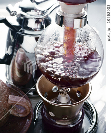 珈琲サイフォンでコーヒーができる瞬間 写真素材