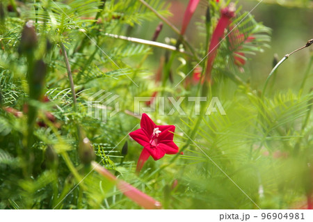 ルコウソウの赤花【緑背景】