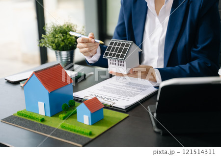 Real estate agent and customer signing contract to buy house, insurance or loan real estate.rent a house,get insurance or loan real estate or property.