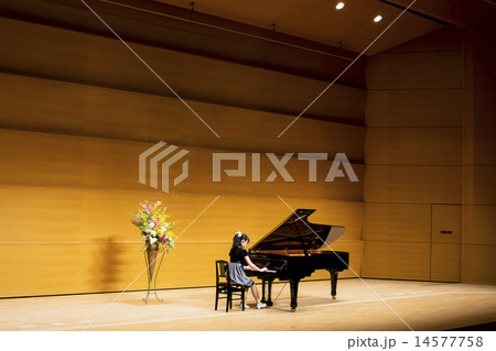 リサイタルの開演を待つコンサートホールのグランドピアノ