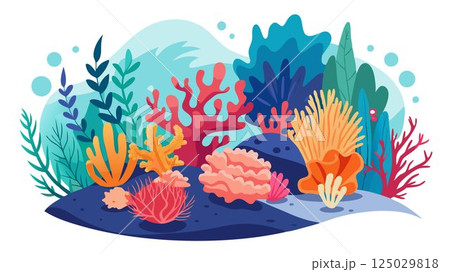 This image offers a visually stunning and detailed depiction of a coral reef against a minimalist white background, effectively capturing the vibrancy, diversity, and intricate detail of this underwa