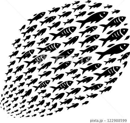 Surreal image of school of fish swimming in wave shaped like large fish