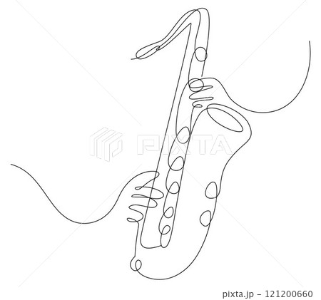Saxophonist playing jazz music instruments, Saxophone player, one continuous line drawing of classical saxophone