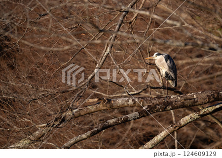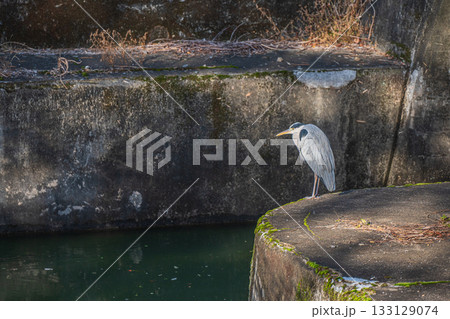 休憩中の美しいアオサギ(サギ科)。日本国埼玉県にて。2023冬撮影。
