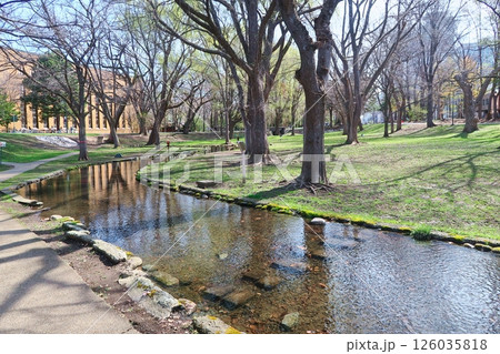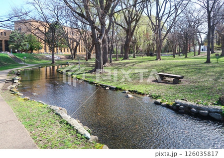 北海道・北海道大学・サクシュコトニ川が流れる素敵な中央ローンの眺め・札幌市
