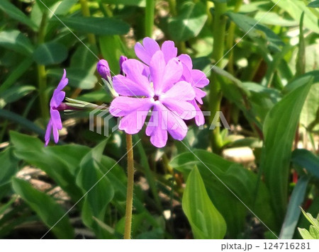 三鷹中原に咲くピンクのサクラソウ(プリムラマラコイデス)の花