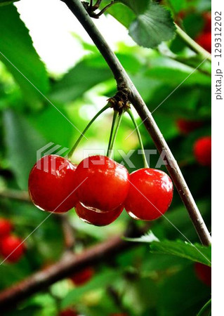赤く実ったさくらんぼ(佐藤錦) さくらんぼ狩り 山形県東根市
