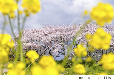 《埼玉県》満開の桜と菜の花・春の権現堂桜堤