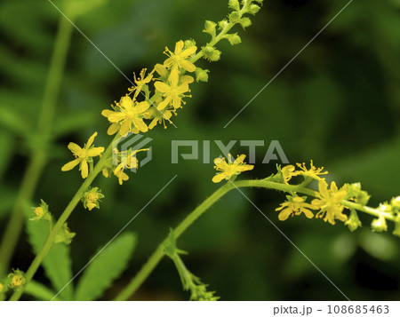 真夏、山野で咲く、黄色い小さなキンミズヒキ