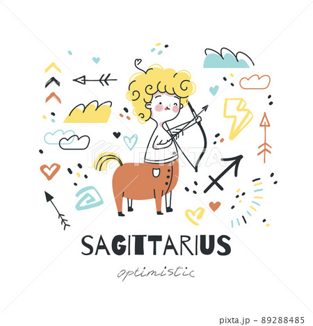 Zodiac sign Sagittarius illustration. Astrological horoscope symbol character for kids
