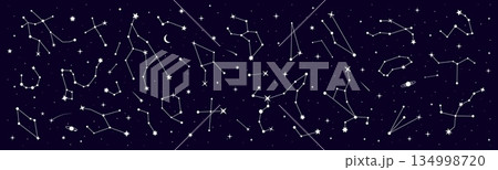 Border of star constellation for mystic astrology with night sky map, vector background. Zodiac signs in star constellations border with starry sky for mystic astrology, esoteric magic and horoscope