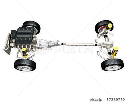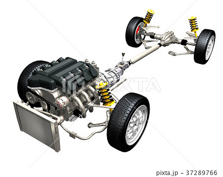 白バックに2モータの4輪駆動電気自動車用のプラットフォーム構造のカットイメージ