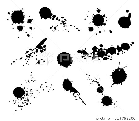 血しぶき、血痕、液体の飛び散りのシルエットセット