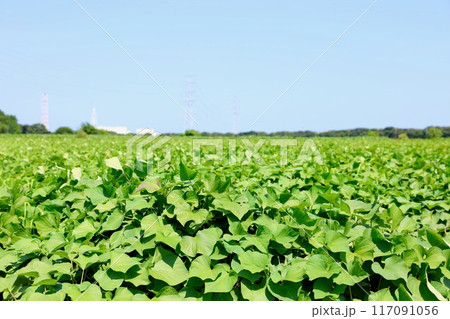 真夏のサツマイモ畑のサツマイモの花 薩摩芋の花 さつまいもの花