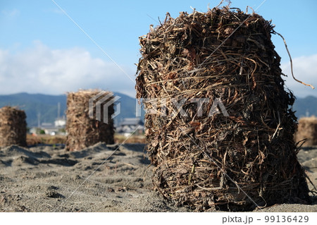 鳴門金時の収穫後、芋づるの干し草ロール