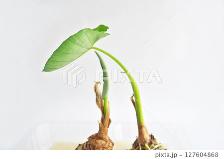 サトイモの切れ端から出て来た子葉の画像素材(写真・イラスト) 1ページ目