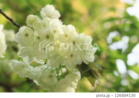 薄緑色の桜 うこんの桜 鬱金 鬱金桜 桜 満開の鬱金