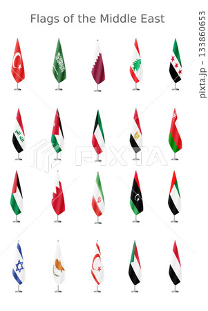 Set of flags of Middle East countries on a flagpole for official meetings, no background vector