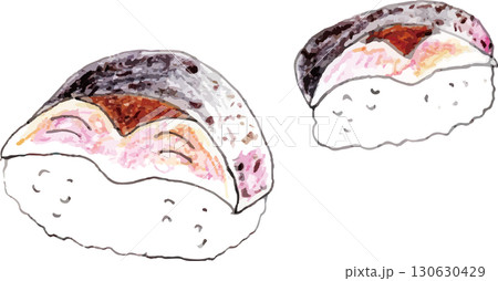 色鉛筆で描いた鯖寿司のイラストレーション
