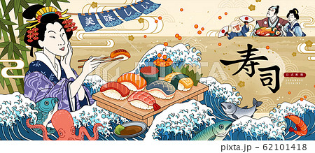 Ukiyo-e style sushi bar ads