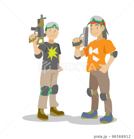 サバゲーをする男性のイラスト