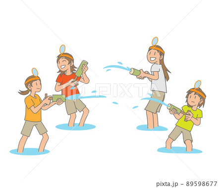 水鉄砲で遊ぶ子供たち