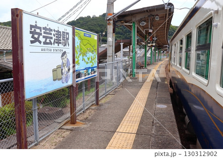 安芸津駅に停車中のetSETOra(エトセトラ)と駅名標