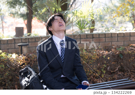外回りの営業でベンチに座って悩む男性ビジネスマン