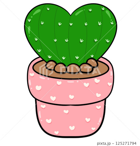 cactus in pink pot with heart shape on transparent background