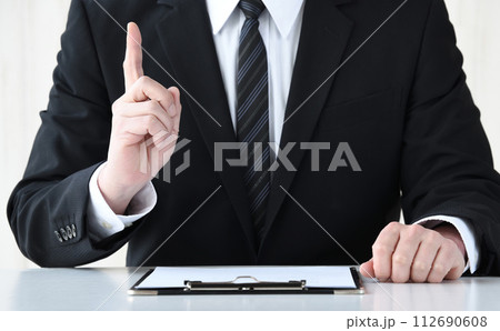 人差し指を立てるビジネスマン