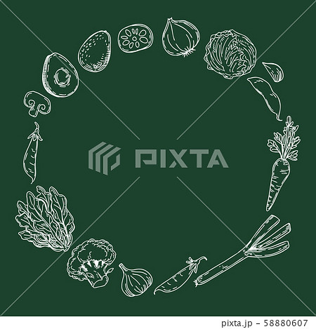 野菜の手描きイラスト サークルフレーム