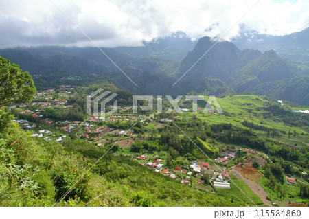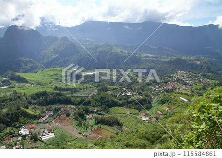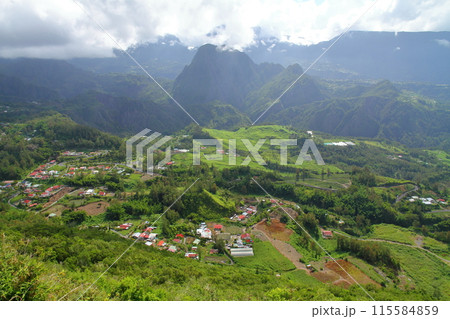フランス海外県レユニオン島 世界自然遺産のサラジー圏谷の村マールアヴィエイユプラスの景色