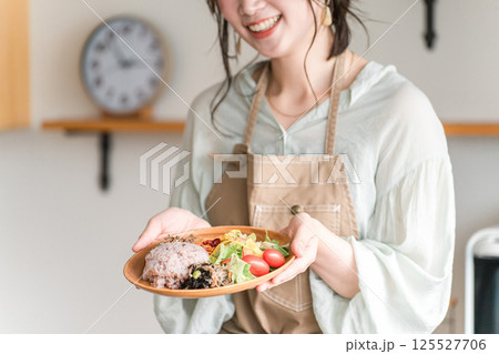 キッチンでお弁当を詰める女性の手元(愛妻弁当)