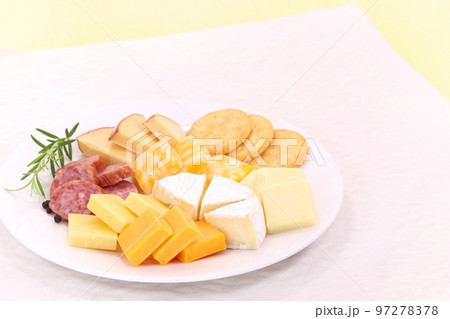 オードブル 盛り合わせ サラミ チーズ クラッカー 明るい背景