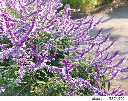 花期のの長い紫色の穂状の花はメキシカンセージの花