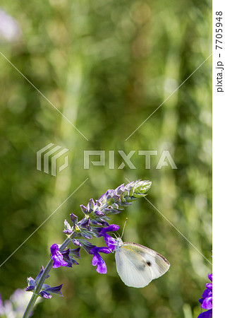 サルビア・ファリナセアとモンシロチョウ 花の写真素材