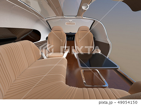 自動運転電気自動車高級サルーンのインテリアイメージ。前列シート後ろ向きで車内会議状態に、
