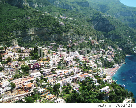 南欧イタリア共和国カンパニア州サレルノ県 ティレニア海沿岸の世界遺産アマルフィ海岸ポジターノの眺望