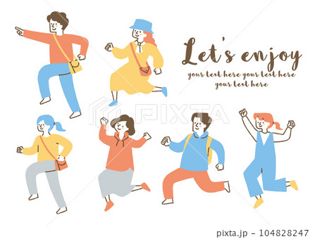 楽しんでいる人たちのセット_色