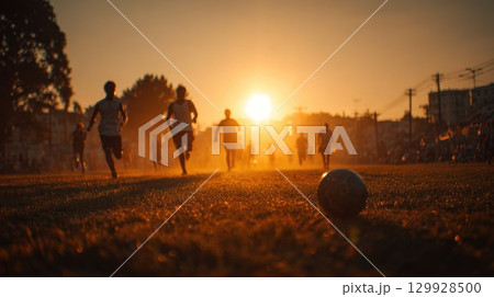 Soccer Players Running at Sunset