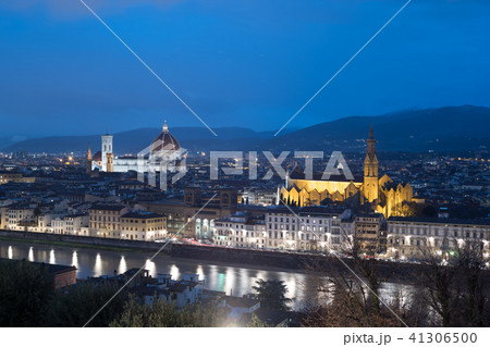イタリア アルノ川越しにミケランジェロ広場から見下ろすフィレンツェ市街地