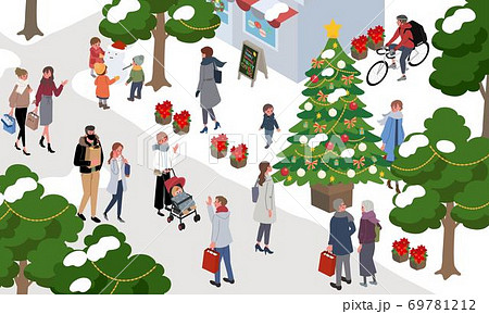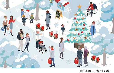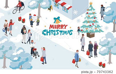 アイソメトリック クリスマスの人々 イラスト 街並み バナー