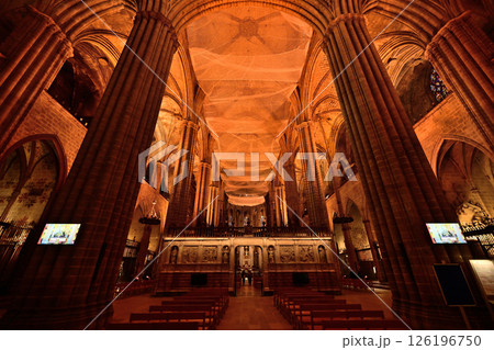Inside a gothic Barcelona Cathedral. Catalonia Spain