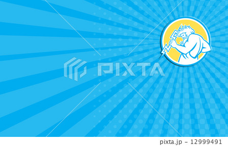 Business card Zeus Wielding Thunderbolt Circle Retro