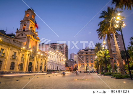 Santiago de Chile, Chile, - Plaza de Armas colored sunset