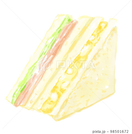 卵とハムとレタスのサンドイッチの水彩イラスト