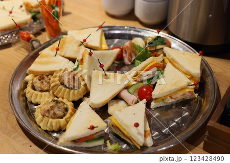 美味しいミックスサンドウィッチとコーヒーの朝食