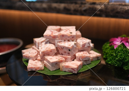 Sliced ham, meat or pork sausage for sandwiches. Cooked smoked prosciutto, ham