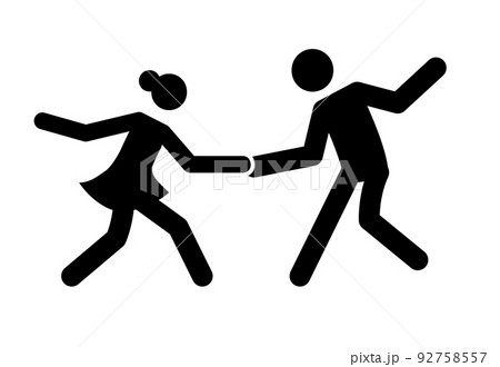 Dance couple stick figure icon. Black ballroom pictogram waltz, tango dancing man and woman.